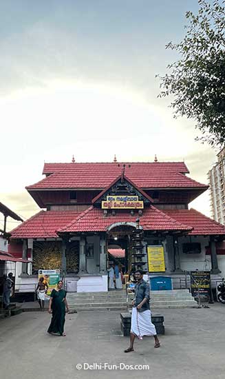 And then came the Tali Shiva Temple, a fine specimen of traditional Kerala temple architecture. With sloping roofs, intricate wood carvings, and a pond beside it, the temple felt deeply rooted. The sanctum sanctorum was lit with brass lamps, and the magical aura held us in a trance.