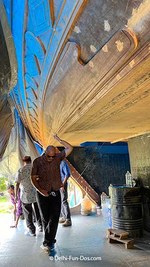 Our Calicut journey truly began in Beypore, about 10 km from the city, to see one of the richest crafts of Calicut that has survived ages. This small port town is famous for Uru-making, an ancient tradition of building large wooden dhows by hand. These ships, known as Urus, are still made for clients in the Middle East without any blueprints! The skills are passed down through generations, and watching the decks made with wood, ropes, and chisels was like stepping into a living museum.