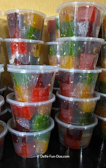 To that end made our way to SM Street, officially called Sweet Meat Street. Among the serpentine lanes in the labyrinth-like neighbourhood, we reached a factory that exclusively produced the halwa. We stepped into a halwa factory and came to know that the halwa was made the traditional way using coconut milk, jaggery, fruit flavours, nuts and raisins and coconut oil. Like most workshops of traditional Indian sweets, this place was also rather deglam. Yet watching the colourful slabs being cut, packed and sold by the kilo, almost made us want to pinch ourselves. Like Kalimpong Cheese and Kotpad, our travels had brought us back to the source of another one of our favourite items.