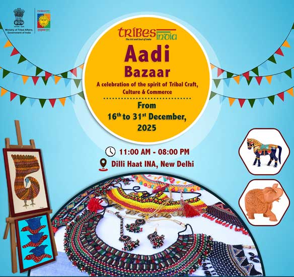 Aadi Bazaar returns to Dilli Haat, INA this December with a vibrant celebration of India’s tribal art, craft, and culture. Visitors can explore a colourful marketplace of handlooms, jewellery, home décor, and unique handcrafted gifts, all created by skilled tribal artisans from across the country.