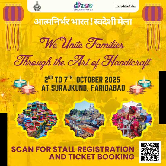 Unite, shop, and celebrate the richness of Indian tradition at the Aatmanirbhar Bharat Swadeshi Mela 2025, organized by Haryana Tourism. From 2nd to 7th October, Surajkund, Faridabad, will transform into a vibrant hub of culture, craft, and festivity.