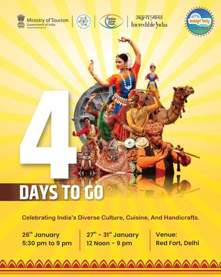 Bharat Parv 2026 celebrates the spirit of India through its rich cultural traditions, regional cuisines, folk performances, and handcrafted art forms. Organised as part of the Republic Day festivities, the event brings together diverse dance forms, music, costumes, food, and crafts from across the country at one iconic heritage venue.