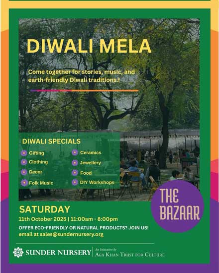 Celebrate Diwali in a meaningful way at The Bazaar’s Diwali Mela, hosted at the beautiful Sunder Nursery. This vibrant mela brings together stories, music, shopping, and hands-on workshops – all rooted in eco-friendly and earth-conscious Diwali traditions.