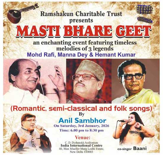 This enchanting evening will feature rare and selective duets, semi-classical pieces, and light folk melodies that showcase the magic of these three iconic voices. Don’t miss this tribute to the legends, presented by Ramshakun Charitable Trust.