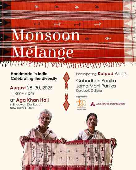 This year’s Monsoon Mélange proudly presents the exquisite works of Padma Shri Gobardhan Panika and master weaver Jema Mani Panika. Witness their artistry, learn about the intricate natural dyeing process, and explore handcrafted treasures that connect tradition with sustainability.