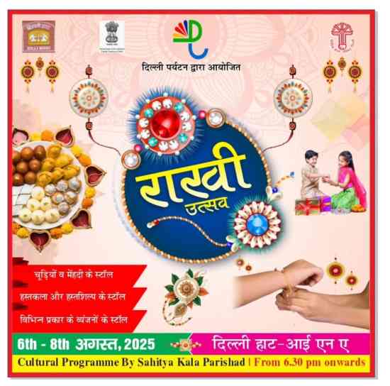 Join us for Rakhi Utsav 2025, a vibrant celebration of traditions, crafts, and culture, organized by Delhi Tourism from 6th to 8th August at the iconic Dilli Haat – INA.