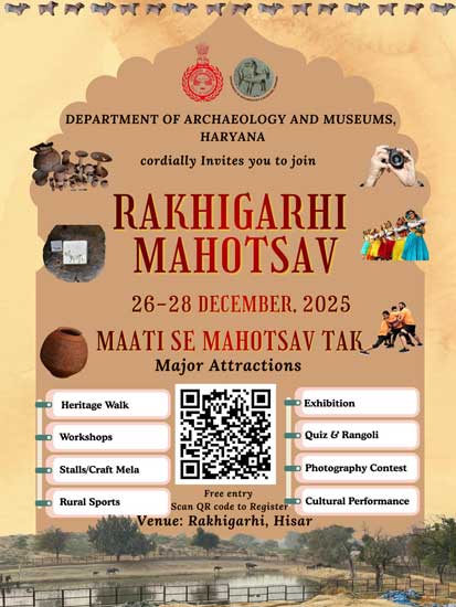 Venue: Iconic Archaeological Site of Rakhigarhi Village, Hisar, Haryana (Entry Free)
