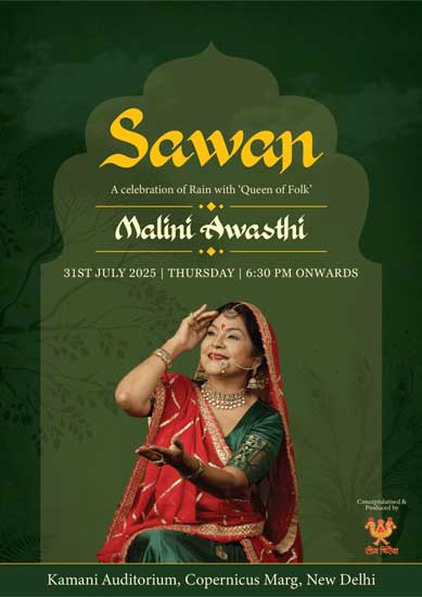 Immerse yourself in the magic of monsoon music with Sawan – A Celebration of Rain, a soul-stirring concert by Padma Shri Malini Awasthi on 31st July 2025, 6:30 PM, at Kamani Auditorium, New Delhi.